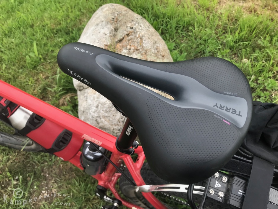 Als je de fietsen in Rotterdam hebt, is het natuurlijk ook meteen een mooie gelegenheid om een leuke route in de buurt te fietsen, dus dat hebben we gedaan. Kon ik direct een gelzadel van Terry testen. Voor bikefitting heeft Bike4Travel allerlei zadels in de winkel. Omdat zij op vrijdag pas om 21.00 uur sluiten, hoefden we niet te stressen tijdens het fietsen of we op tijd terug zouden zijn. Ellen van Bike4Travel heeft een heel stappenplan voor fietszadels gemaakt om te komen tot het juiste minst ellendige fietszadel, rekening houdend met de breedte van je zitbotjes en hoe flexibel je rug is. Maar het beste is natuurlijk als je het zelf kunt ervaren op je eigen fiets. Van het geteste Terry-zadel kreeg ik alsnog dezelfde zadelpijn als met een hard zadel van Ergon, maar de gel vangt goed de schokken op als je over bijvoorbeeld klinkers rijdt en dat is erg prettig als je zitbotjes inmiddels beurs zijn geworden. Het is net alsof je een Thudbuster in je zadelpen hebt zitten. Het geteste Terry-zadel Fisio Gel Max heb ik daarom aangeschaft, weer een klein stapje beter minder erg dan het vorige zadel.