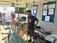 2018-mike-burrows-tent Gepubliceerd 26/07/2018 at 940 × 705 in Hitte en zon tijdens WK HPV 2018 ← Vorige Volgende → Mike Burrows in de tent met zijn tentoongestelde fietsen