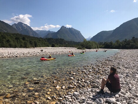 In Slovenië doen de gebouwen denken aan Oostenrijk en het land is zeker niet arm. Op de campings zijn overdekte keukentjes met gasfornuis, zoals in Denemarken. Omdat het gebied, de Julische Alpen, alleen bereikbaar is via kronkelende bergweggetjes zie je hier vooral tentjes en hier en daar een buscamper. Die keukentjes zitten elke avond vol met lichtgewicht kampeerders. Geen probleem voor ons want we hebben stoelen en een wat grotere tent bij ons waar we in kunnen zitten en koken. Je zou het een zogeheten charme-camping kunnen noemen, als het niet onder water liep.