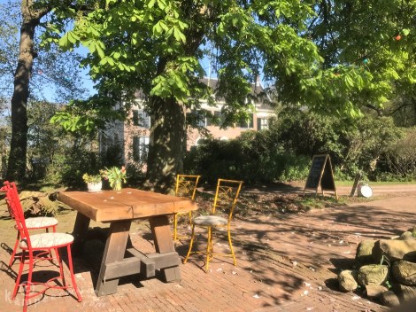 Die avond kampeerden we op natuurkampeerterrein Landgoed de Oldenhof. Naast een havezate met slotgracht sta je hier op een mooi veld omringd door hoge bomen. Er zijn geiten, een varken en kippen op het terrein. De beheerders Aafke en Taco zijn heel gastvrij. We dronken een biertje op hun terras. Taco was in 2015 in Nepal voor een beklimming van Mount Everest toen de zware aardbeving plaatsvond. Hij zet zich nog altijd in voor dit land. Voor wie eventueel de sluitingstijd van de supermarkt gemist heeft, zijn er op deze camping wat eenvoudige zaken te koop waar een avondmaal mee gemaakt kan worden. Het enige wat jammer is, is dat je de N331 wel hoort vanaf het kampeerterrein. De vele vogels overstemmen dat overdag.