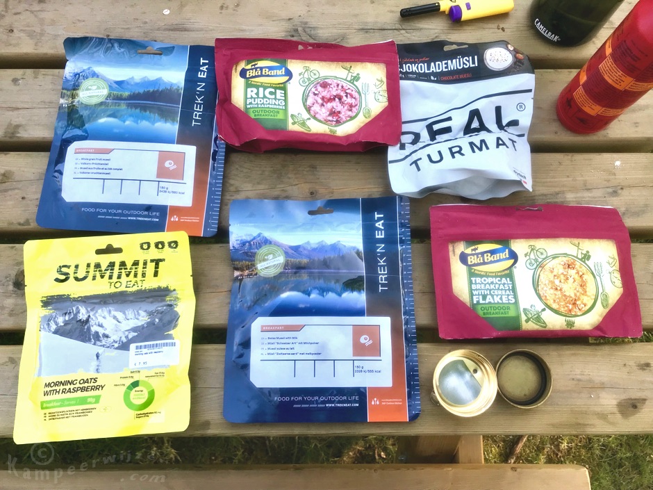 Op kampeerweekenden eten we meestal kant-en-klare gevriesdroogde maaltijden. Al eerder heb ik geschreven dat ik Dave alleen meekrijg op onze kampeerweekendjes als het ‘expedition breakfast’ op voorraad is. Maar in het kader van de wetenschap kreeg ik ‘m zo gek om een extra lang weekend te ontbijten met verschillende merken. Want wie weet bestaat er wel een nog lekkerder instant ontbijt. We vergeleken negen ontbijten van een vijftal merken, waaronder Real Turmat, Adventure Food en Summit To Eat.