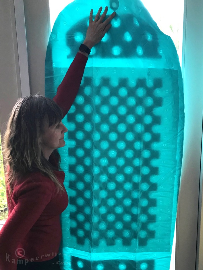 Isolatie tegen het licht gehouden. Hierdoor zie je goed de zones tussen de dubbele en enkele air sprung cells.