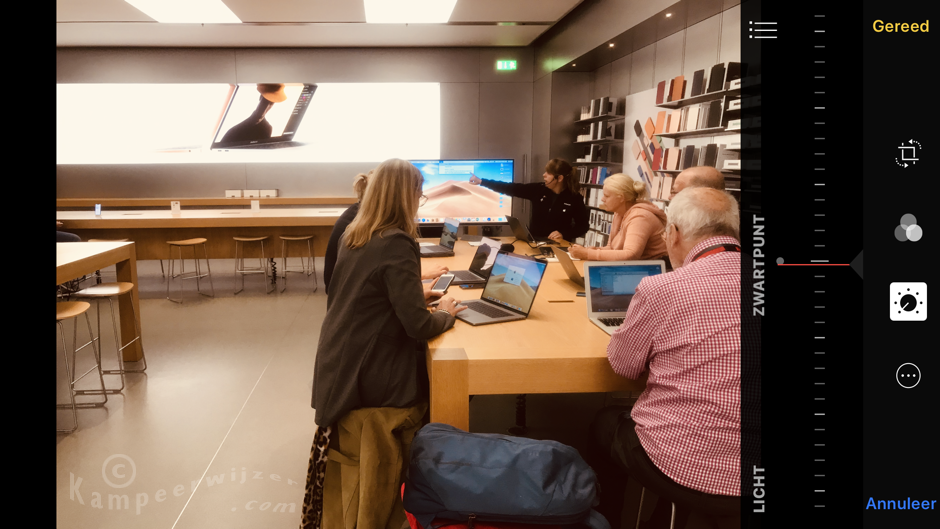 In Apple stores worden gratis foto- en videocursussen gegeven, zie het overzicht op Today at Apple. Hier kan je cursussen volgen die uitleg geven over de functies die op je iPhone zitten maar ook creatieve sessies die ingaan op regel van derden, portretfotografie, het nabewerken van foto’s, het maken van verschillende shots, werken met schaduw en licht en hoe je slow motion en hyperlapse video-opnamen kunt gebruiken in je montage. Zelfs op de basiscursus fotografie leerde ik hier nog allerlei nieuwe handigheden, zoals hoe je op een iPhone de scherpte-diepte vastzet, dat de zelfontspanner ideaal is voor het maken van een selfie, en dat je je flitslicht permanent kunt aanzetten om video’s op te nemen in het donker, etc.