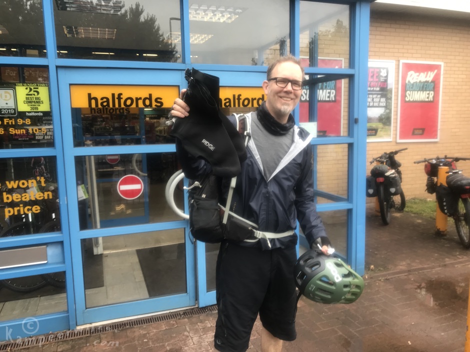 gb19-overschoenen Gepubliceerd 01/07/2019 at 940 × 705 in Twee weken fietsen in de Engelse regen ← Vorige Volgende → Dave is superblij met de overschoenen in zijn maat, gevonden bij Halfords in Salisbury