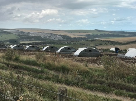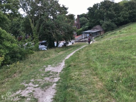 We komen langs een van de markante punten, Devil’s Dyke. Het is een wal opgestuwd in de ijstijd. We lunchen op de boerderij bij Saddlescombe. We doen er drie uur over om de tien kilometer hierheen af te leggen. Hier zouden we eerst gaan kamperen, als het niet zo zou zijn gaan regenen. Er hangt hier een leuke vibe. Er is een ‘food van’ die ontbijt en lunch serveert. De South Downs Way loopt over hun grond.