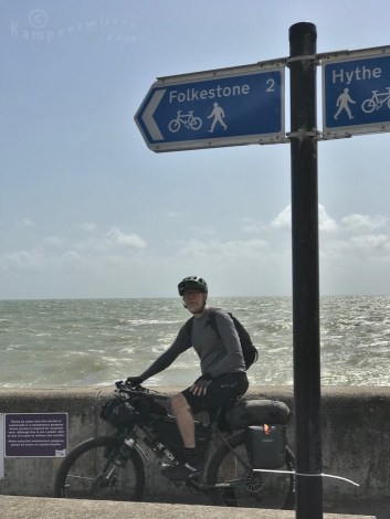 De wind is ons weer gunstig gezind (bedankt Coen, voor deze wereldtip!). We zitten onderweg op te hikken tegen de steile heuvel Folkestone uit. Maar als je nog maar een paar dagen geleden de South Downs Way hebt gefietst, valt die heuvel opeens erg mee! Voor we het weten zijn we alweer in Dover.