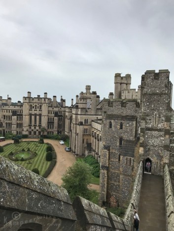 Via public bridleways zakken we tien kilometer af naar Arundel. Hier staat een enorm groot kasteel dat zeer het bezoeken waard is. De 18e hertog van Norfolk die hier woont met zijn gezin is verantwoordelijk voor alle ceremonieën van het Britse koninkrijk. Wat een pracht en praal. Niet te bevatten hoe exorbitant rijk deze familie is. Zes eeuwen oud geld. We hebben het meest uitgebreide ticket gekocht, zodat we ook de gastenverblijven kunnen zien. De gotische bibliotheek vinden we het mooiste.