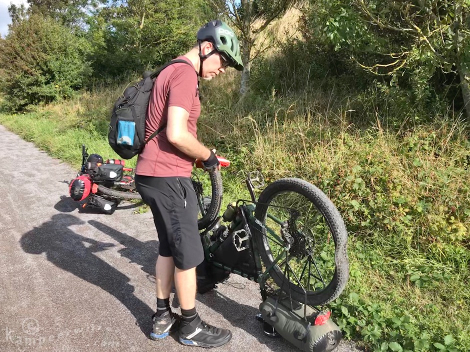 SDW-lekke-band Gepubliceerd 05/09/2019 at 940 × 704 in Bikepacken op de South Downs Way ← Vorige Volgende → Gescheurde band, even buiten Steyning