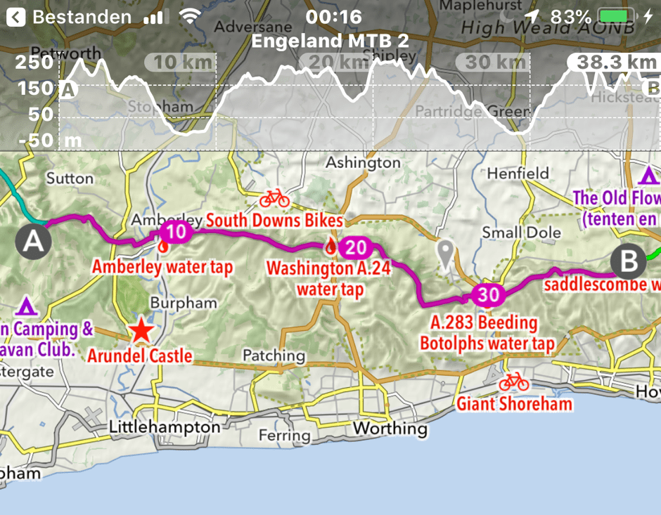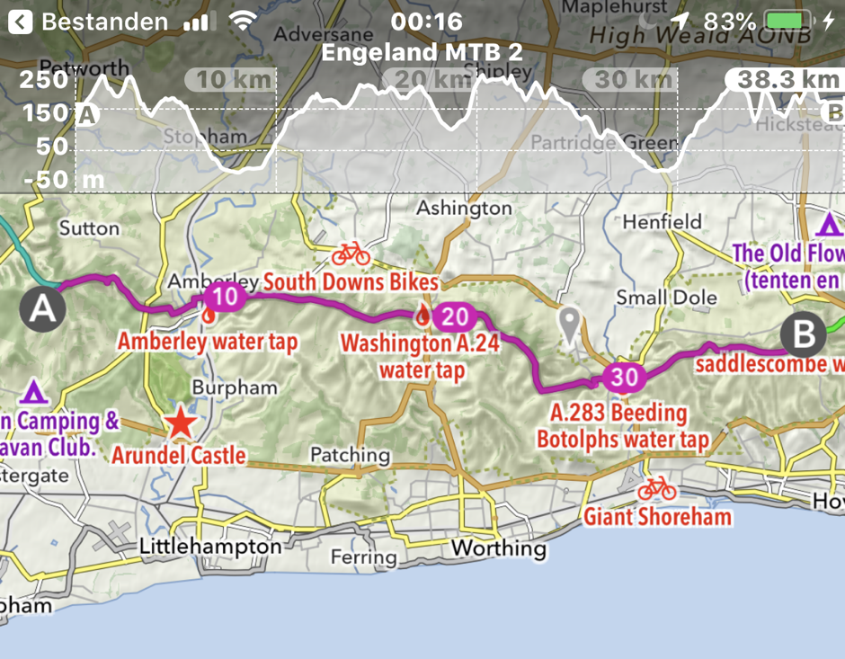 SDW-route3 Gepubliceerd 06/09/2019 at 940 × 733 in Bikepacken op de South Downs Way ← Vorige Volgende → Route en hoogteprofiel op de derde dag op de SDW