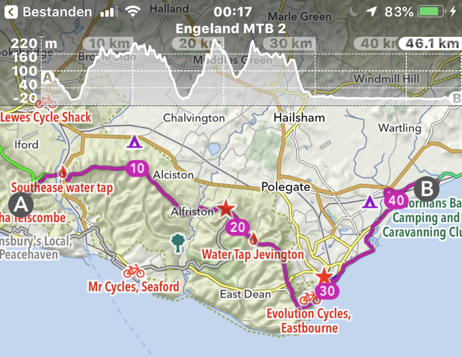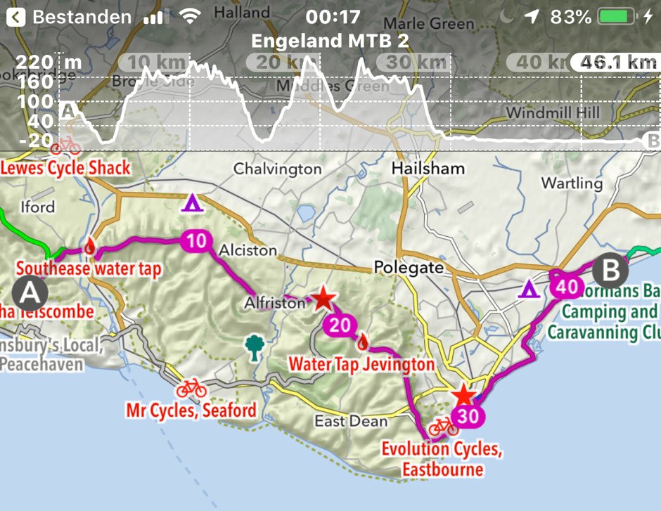 SDW-route5 Gepubliceerd 06/09/2019 at 940 × 727 in Bikepacken op de South Downs Way ← Vorige Volgende → Laatste etappe op de SDW, met het vlakke deel langs de kust
