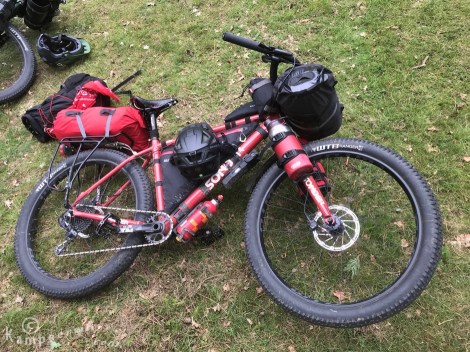 Zelf hebben we het gevoel een beetje illegaal en undercover op dit kamp te bivakkeren. Door onze lichtgewicht dyneema tent en de bikepacking configuratie op onze plusbikes lijkt niemand te twijfelen aan onze ‘status’ van wereldfietser. Terwijl we op onze fietsreizen nooit verder zijn gekomen dan Denemarken, de Moezel en Engeland. Dat maakt ons Europafietsers, geen wereldfietsers. Maar dat ligt ook op de wereld, dus we zijn ok. Bovendien hebben we helemaal geen ambities die in de richting van Zuid-Amerika, Afrika of Azië wijzen.