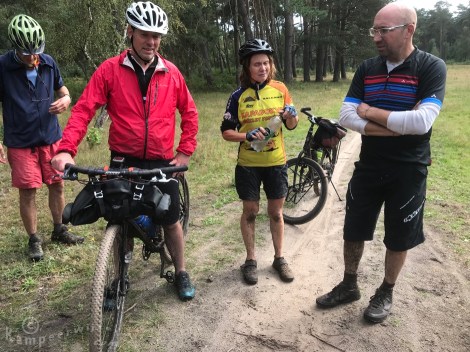 We spreken met iemand die in de ballotagecommissie van de NTKC zit. Dat vinden we een goede ontwikkeling om nieuwe leden voor te bereiden op de traditidionele waarden van deze kampeerclub. Verder zijn er initiatieven om het aantal caravans voor oudere leden weer terug te dringen, zodat het karakter van klein kamperen gehandhaaft blijft. We zien soms veertig-plus jaar oude tenten op het terrein staan. Iemand denkt dat ‘Belle’ alleen mijn forumnaam is, vraagt hoe ik echt heet, LOL. Drie man roepen in koor “Belle”! Mensen komen onze tent van Zpacks bewonderen, kijken naar binnen, bekijken de fietsen, rijden op onze fietsen omdat ze willen weten hoe dat nou rijdt, op banden van 2.8 inch breedte. Met Warner, die met zijn tent naast ons staat, heb ik meteen best wel diepgaande gesprekken. Maar het is allemaal wat te veel en te vluchtig. Zo’n weekend is veel te kort en te druk.