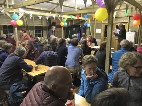 Na de uitreiking van de puzzeltocht zijn er nieuwe kansen op prijzen. De avond wordt gevuld met een pubquiz. Ons team, bestaande uit Dave, Bert, Warner en ondergetekende (Belle), gaat ‘strategisch’ voor de poedelprijs.