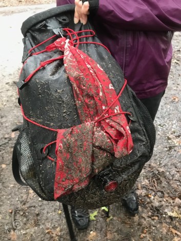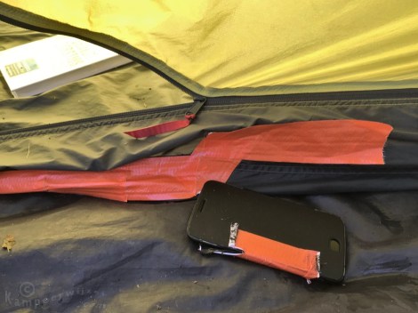 Zelf kom ik er helemaal niet aan toe om rond te kijken bij anderen. Ideeën om lichter en compacter te kamperen zijn altijd interessant. Eén man met een prachtige fatbike met velgen in de framekleur kampeert met een tentje van Big Agness en kan alles heel compact kwijt. Een nadeel van dyneema is dat het niet zo strak oprolt. Wat zijn en onze tent wel gemeen hebben zijn korte stokdelen, dat pakt handig in.