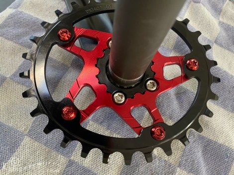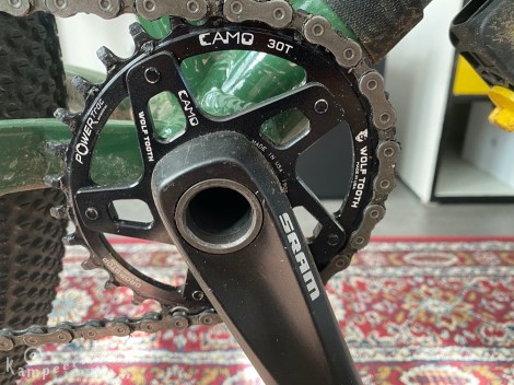Dave koos voor een elliptisch tandblad met dertig tanden (30T). Ovaal zou beter zijn tijdens het klimmen en welke bikepacker wil er nou niet beter kunnen klimmen? Dave ervaart normaal met een rond kettingblad een dood punt tijdens het trappen, ik heb dat zelf nooit zo ervaren. Mogelijk trap ik ronder. Je kan dit laten testen op fietsbeursen zoals BikeMotion, op van die stands met vermogenmeters of virtueel tegen elkaar fietsen op een trainer.