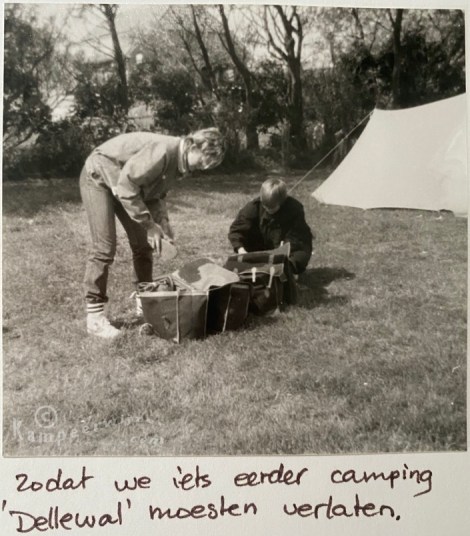 Op een camping in Paasloo had de eigenaar medelijden gekregen naar aanleiding van ons verhaal en bood ons een caravan aan om in te slapen. Maar we hadden helemaal niet met die bedoeling verteld over ons avontuur en waren veel te trots dat we die tent nog enigszins hadden kunnen opzetten. Dus wij sliepen die nacht gewoon in de tent.