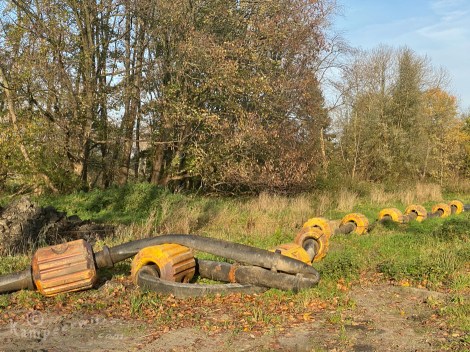 De slenk wordt nog steeds verder uitgebreid en dus is het bos bezaaid met allerlei vervreemdende aparatuur.