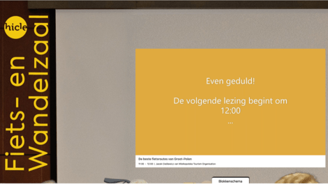 Ik probeerde een andere lezing live te volgen, over fietsroutes in Polen, maar trof een gesloten gordijn aan met de mededeling over hoe laat de volgende lezing begon. Onduidelijk was of de lezing niet door was gegaan of al afgelopen, of er technische problemen waren of dat je na aanvang de zaal niet meer binnen mocht. Maar dat laatste leek me niet logisch. Gelukkig kon ik deze presentatie de maandag na de beurs online terugkijken. Het bleek een vooraf opgenomen promotievideo.