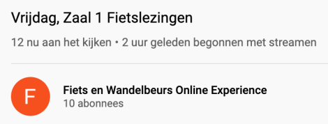 De workshops zijn helaas niet terug te zien. Deze vonden plaats via Zoom in plaats van YouTube in verband met de mogelijkheid voor interactiviteit en zijn helaas niet opgenomen. Mocht de Online Experience een vervolg krijgen is dit iets om in het achterhoofd te houden. Maar we vermoeden dat het bij deze eenmalige unieke online gebeurtenis blijft. Het zou echter een goed idee zijn als de Fiets en Wandelbeurs in de toekomst ook de lezingen gaat opnemen en ter beschikking stelt voor iedere bezoeker die niet meer naar binnen kon in de volle zaal.