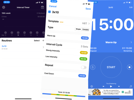 IntervalTimer is heel gebruiksvriendelijk om je eigen trainingen aan te maken en te plannen. Het scherm krijgt heel duidelijk ook een andere kleur per interval. Blauw bijvoorbeeld voor warm-up en cooldown en groen voor lage intensiteit, etc. Maar je kunt niet je hartslag zien in de app, dus je weet niet of je met de juiste intensiteit traint tijdens de verschillende intervallen.