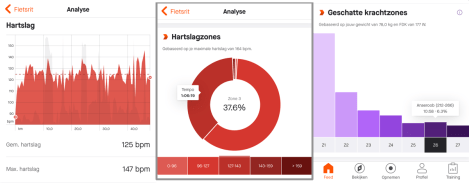 Als je een hartslagband hebt die Bluetooth ondersteunt, dan kan je deze koppelen met Strava op je telefoon. Met een betaald abonnement kan je in Strava je hartslag zien tijdens het fietsen. Je moet echter steeds swipen op je telefoon tussen de kaart en je hartslag en andere cijfers. In Strava heb ik geen opties kunnen ontdekken om zelf HIIT- of intervaltrainingen te maken.