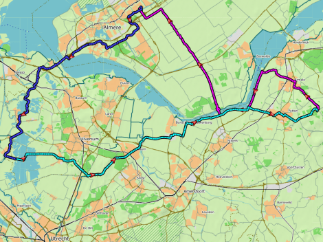 De volgende dag begon wat grijs maar droog en Magda en Jos fietsten met ons mee. In Ermelo namen we taart en koffie op een terras. Dat was ook alweer een tijd geleden, het was precies 1 jaar, 1 week en 1 dag geleden dat we op een terras zaten. Bij de brug bij Nijkerk gingen we ieder ons weegs richting huis. Onwetend van de code geel waren we allemaal voor de bui weer thuis. Het was echt een heerlijk weekend met temperaturen rond de 21 graden. Op naar het volgende kampeeravontuur!