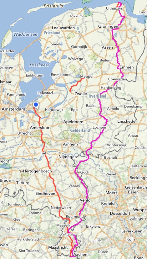 Het is dus even puzzelen hoe we bij het startpunt van de TNNZ komen. Een andere optie is om de trein richting Den Helder te nemen en dan de fietsbus over de Afsluitdijk. Maar dan moet je ook nog een heel stuk door Friesland en Groningen. We besluiten daarom het stuk tussen de Kampen-Zuid en Meppel zelf te fietsen, zo hebben we op de aanreisdag ook nog een leuke fietstocht tussendoor van 32,7 kilometer plus het stuk naar de noordkaap en vandaar naar de eerste overnachtingsplek.