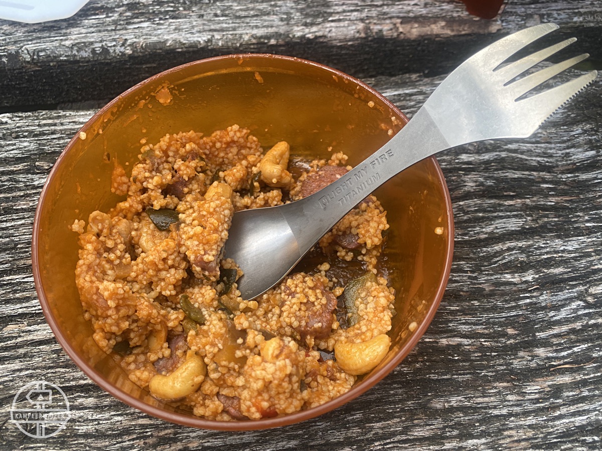 TNNZ3-couscous-cashew-diner Gepubliceerd 21/08/2021 at 1200 × 900 in TNNZ 3: De tent valt uit elkaar ← Vorige Couscous met gemarineerde groenten, droge worst en cashewnoten