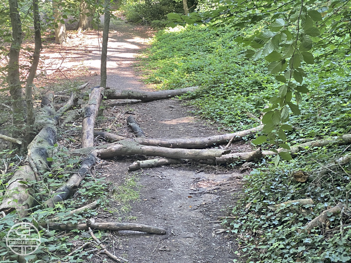 TNNZ15-versperring-imstenraderbos-boomstammen Gepubliceerd 01/09/2021 at 1200 × 900 in TNNZ 15: De weg naar de top is vol hindernissen ← Vorige Volgende → Paden gebarricadeerd tegen mountainbikers in Limburg