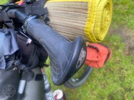 Ik had net de avond voor het ongeval nieuwe handvatten op mijn fiets gezet. De 710 van SQlab is ergonomisch gevormd en ik was er wel nieuwsgierig naar nadat ik ze gezien had bij bikepacker Jos tijdens onze reünie op Drie. Ze zijn gemaakt van dik rubber materiaal wat iets doet denken aan het sticky rubber van de zolen van Five Tens mountainbikeschoenen. Het was nog een hele tour om die handvatten goed op het stuur te zetten. SQlab geeft aan dat ze “horizontaal” op het stuur moeten. Maar wat is horizontaal bij een ergonomische vorm?