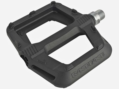 We kwamen enkele alternatieven tegen voor platformpedalen met pinnen, zoals de Shimano PD-EF202, mede dankzij de suggesties die werden aangedragen op het forum van De Wereldfietser en mijn netwerk op Twitter. De keuze voor nu is gevallen op een nylon composiet pedaal van Race Face, de Ride. In de toekomst moet blijken of de meegegoten stompe pinnen niet scherp worden door gebruik en of ze voldoende grip bieden. Maar eerst moeten die hechtingen er nog uit. Daarna ga ik het bloed van mijn fiets poetsen en de nieuwe pedalen installeren.