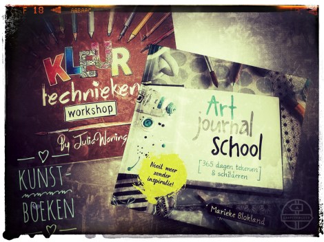 Wie zegt dat je met een blanco reisverslag op pad moet? Thuis kan je al beginnen tijdens de voorbereiding van je reis. Hier en daar willekeurig misschien wat pagina’s uit een reisbrochure verwerken en alvast wat stempels afdrukken. Of vlekken maken met aquarelverf met kleuren die je verwacht dat ze bij je reis zullen passen. Je hebt een andere kleurassociatie bij Tokyo dan Ierland toch? Noorwegen is voor mij ijsblauw, Ierland groen en bij Tokyo denk ik aan neonkleuren. Maar misschien slaat mijn creatief aangewakkerde brein al associërend op hol na het lezen van het boek Art Journal School van Marieke Blok. Een aanrader.