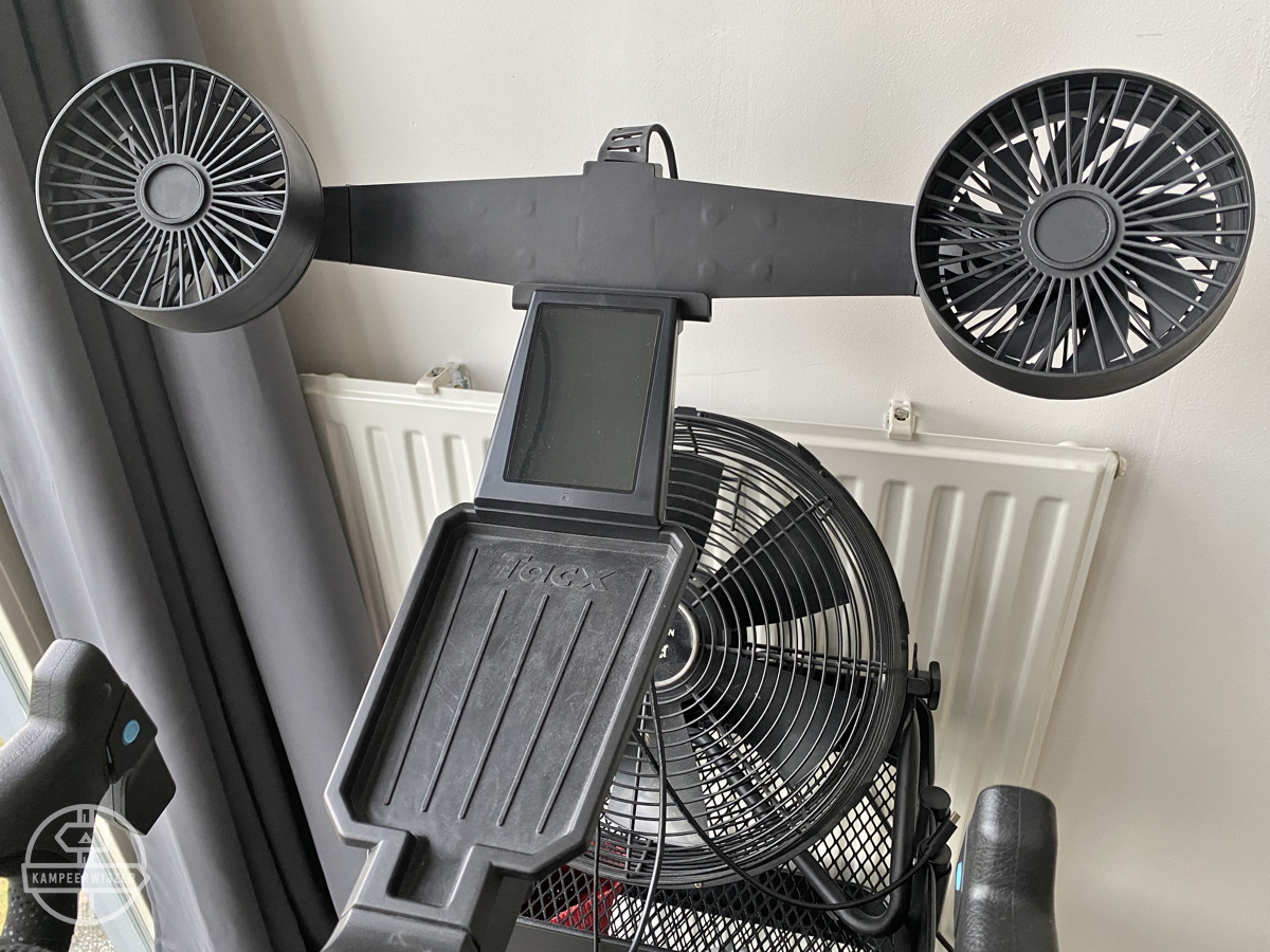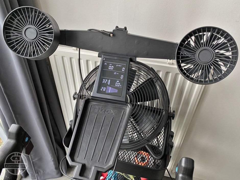 De Neo Bike heeft twee kleine ingebouwde ventilatoren die je kunt laten reageren op snelheid, hartslag of wattage. Je kunt ook instellen of ze zacht, medium of hard moeten blazen. In de praktijk gaan ze pas aan als je het al een tijdje veel te warm hebt. Een extra huishoudelijke ventilator is aan te raden.