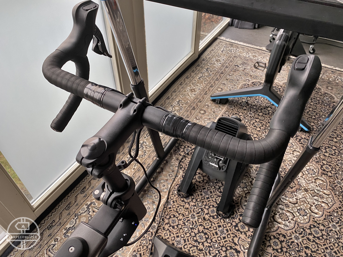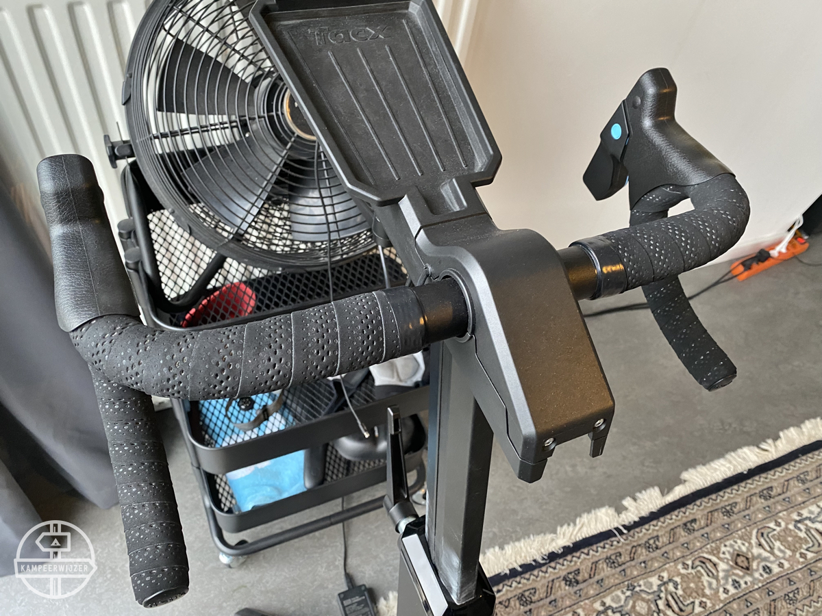 Het schakelen op de KICKR Bike gaat veel soepeler dan op de Neo Bike. Op het stuur zitten bij de remgrepen flippers, die makkelijk te vinden zijn. Via de app heb je diverse mogelijkheden over hoe de KICKR schakelt, bijvoorbeeld SRAM Mechanish of Shimano Di2, dus het is even kijken hoe je dit moet instellen zodat de trainer op dezelfde manier schakelt als je buitenfiets. Bij de Neo Bike is het een beetje zoeken naar de knoppen op de zijkant om te schakelen maar het went uiteindelijk wel.