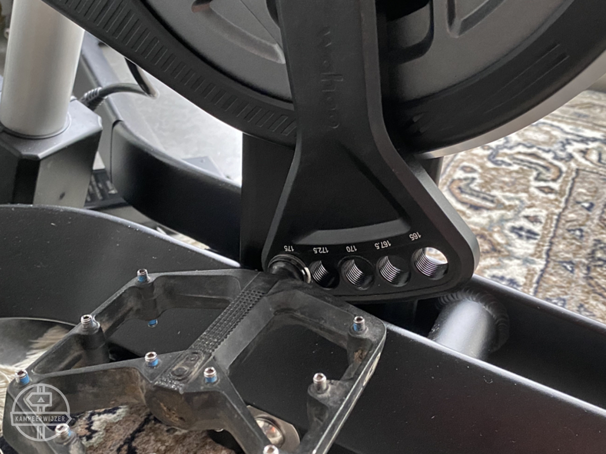 Om de cranklengte in te stellen, zitten er in de KICKR Bike verschillende gaten in de crank. Hierdoor heb je vijf opties om de cranklengte in te stellen, te beginnen met 165 mm. Het is hierdoor makkelijker wisselen als de trainer door meer personen wordt gebruikt maar fraai oogt het niet. Bij de Neo Bike krijg je drie verschillende opzetstukjes, waardoor je de cranklengte kunt instellen op drie lengtes: 170, 172,5 en 175 millimeter. Dit ziet er mooier afgewerkt uit. Helaas kregen bij de Neo Bike twee dezelfde inzetjes. Foutje, maar toch vervelend.