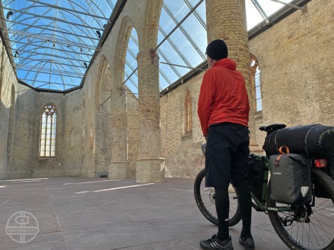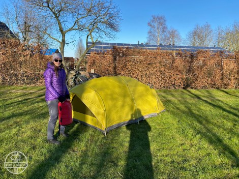 Bolsward hebben we toen niet bereikt en die stad wilde ik sindsdien bezoeken vanwege de Broerekerk, een ruïne van een dertiende eeuwse kerk met een glazen dak. Het plan voor het weekend kamperen was geboren: beginnen bij de Broerekerk en dan fietsen naar natuurkampeerterrein Singel in Jubbenga, zo’n 55 kilometer verderop. De keuze viel op dit natuurkampeerterrein omdat het open was in de winter (de meeste campings gaan pas 1 april open).