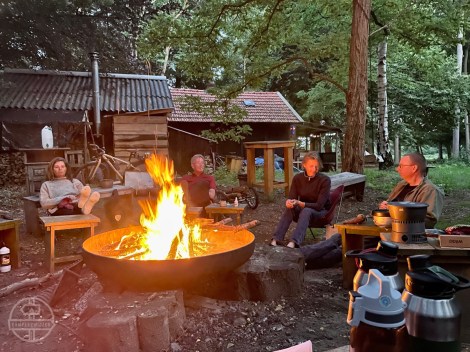 Hoewel de Christoffelkampen in eerste instantie gericht zijn op beginnende vakantiefietsers is het ook voor meer ervaren fietsreizigers een uitgelezen moment om nieuwe materialen te testen. Ook wij leerden nieuwe dingen. Van Evert een mooie 3D knopen-app en een betere manier om een lijn op te schieten (achtjes om duim en pink). Van Mirjam hoe je met een firesteel nu eindelijk van smeulend materiaal tot echte vlammen komt – en natuurlijk eetbare planten herkennen. Hoe comfortabel warm een soort underquilt voor een kampeerstoeltje is. Van paardenliefhebber Michelle dat je je hond niet moet laten liggen als er een ruiter langskomt, omdat dit gezien wordt als aanvalshouding door het paard. Iedereen in zo’n groep heeft eigen interessante ervaringen en oplossingen waardoor je altijd rijker terugkomt.