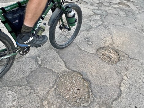 In de DDR tref je af en toe een vrij puntig type kinderkopjes aan. Vaak kun je ernaast fietsen in de berm. Tip: loop voor de vakantie alle boutjes van je fiets en fietstassen na en zet ze vast met Loctite.