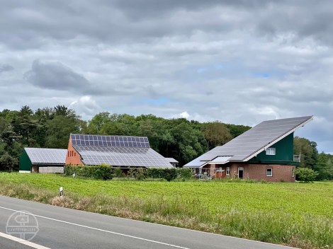 Onderweg zien we wulpen en hazen. Veel huizen hebben enorm veel zonnepanelen. Gaafste wat we zien is een buizerd die van ons schrok en een compleet konijn probeerde mee te nemen.
