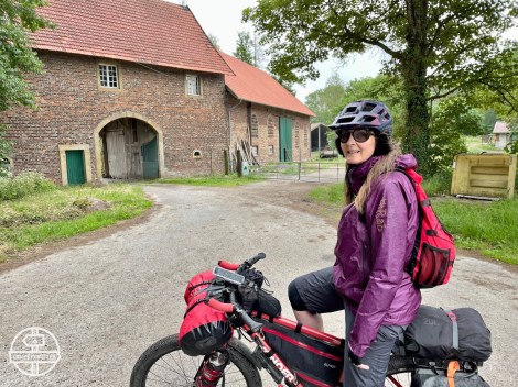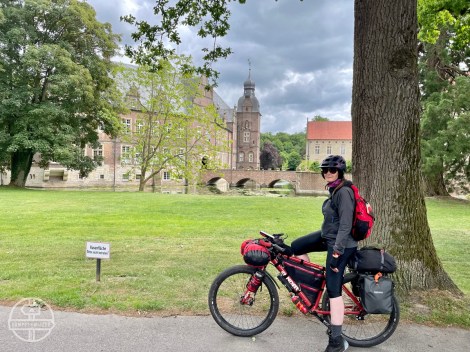 Tot nu toe zien we dat de route elke dag zowel asfalt- als fijne gravelwegen afwisselt. Dat alles is heel goed te fietsen. Verder zien we dat de route vaak langs kastelen en landhuizen voert, zoals vandaag het Holter slot. Als we door grotere steden fietsen dan is dat meestal door parken over fijne schelpen- of grintpadjes, waarbij wij ons afvragen of je er wel mag fietsen. Dat mag maar het voelt vreemd omdat je op dit soort paden in Nederland meestal niet mag fietsen. De route gaat ook vaak door mooie beboste stroken langs de loop van een beek, zoals de Ems. Die zijn allemaal breed en ondiep en met helder water.