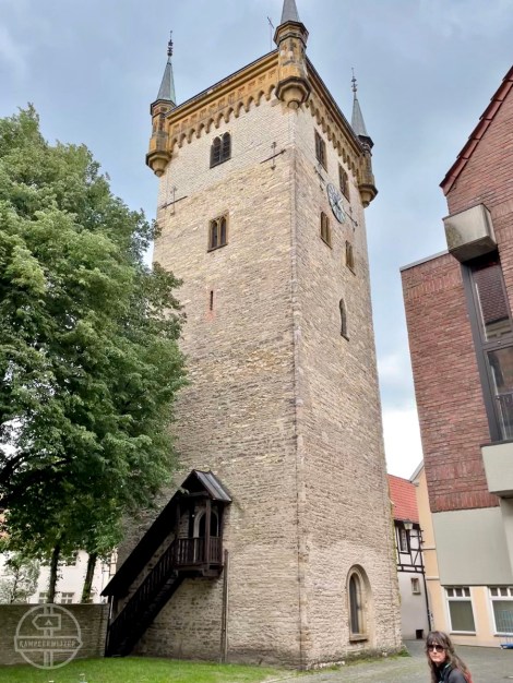 Oh lala, wat was de route mooi vandaag, door het Teutoburger Wald. In de verte zagen we het Hermannsdenkmal, het hoogste beeldhouwwerk van Duitsland. In de stad Detmold reden we door een langgerekt park waar op dat moment een markt in tweedehands spullen werd gehouden. We reden langs een eindeloze sliert tafels met spullen en er waren veel mensen op de been. Weten ze niet dat daar de R1 Europaradweg loopt? Ga dit lekker op de A10 rond Berlijn doen!