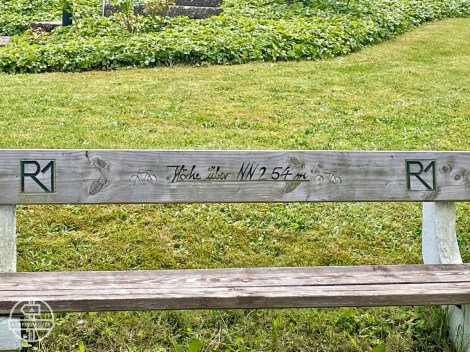 Met het klimmen (zie foto van bankje: 254 meter!) kwamen ook de mooie vergezichten. Je hoeft daar helemaal niet zo hoog voor te klimmen. In totaal klommen we vandaag slechts 506 meter. Dat lijkt misschien niks voor sommige mensen (uitslovers die 1750 meter op een dag klimmen bijvoorbeeld) maar we hadden wel voor drie dagen boodschappen in onze fietstassen! Waaronder een liter havermelk want melkpoeder (Vollmilchpulver) dat vinden we hier nergens, Duitsers kennen het ook niet, behalve voor baby’s of in de koffie. Maar waarschijnlijk heeft de gemiddelde supermarktbezoeker in Nederland ook nog nooit van Elk melkpoeder gehoord.