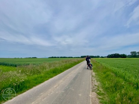 De route is vandaag weer erg mooi, ondanks het grijze weer. Het is zoals elke dag een bijzonder stille route met weinig autoverkeer. Elke dag gaat de route wel een of twee keer door een plaatsje, dit is handig voor de lunch of het doen van boodschappen. Verder loopt de route vaak langs landhuizen en kastelen maar die zijn vaak erg privé en liggen meestal grotendeels verscholen achter bomen.