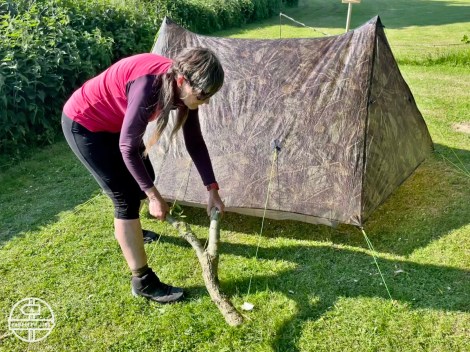 Het is primitief en lekker stil hier. Om het enige toilet gecombineerd met douche wat te ontzien zijn er op het terrein ook twee composttoiletten gemaakt. We zagen een egeltje over de camping scharrelen. De grond is wel hard, dus ik moest met een wichelroede de haringen de grond in toveren.