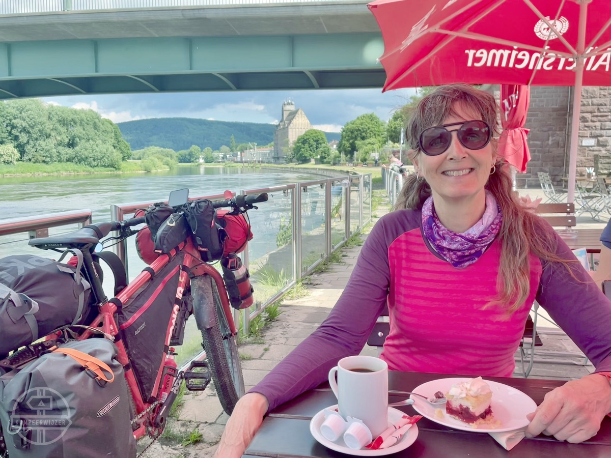 R1-606c-weser-terras-belle Gepubliceerd 10/08/2022 at 1200 × 900 in Fietsen naar Berlijn (2): klimmen in de Harz ← Vorige Volgende → Tweede ontbijt langs de Weser