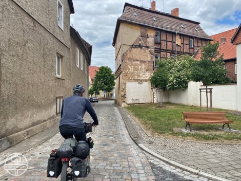 Als de mensen ons hier aanspreken kunnen we het niet meer verstaan. Na “Wie bitte?” volgt meestal nog geen Hoch Deutsch. Opvallend veel mensen zijn hier flink getatoeëerd. In sommige plaatsen hangt een verkeerde sfeer, het was ons beiden opgevallen. Zoals in Strassfurt. Maar het kan ook aan de route liggen, dat die niet door de fraaiste buurten voert.