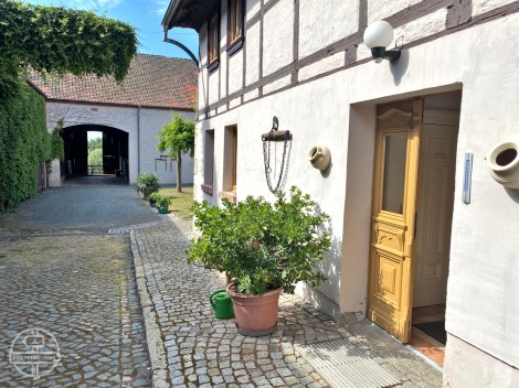 We slapen in pension Robinienhof in Seeland. We hebben een echt prachtige grote kamer van 40 m2 voor slechts zestig euro, zonder ontbijt. Zo’n plek vinden we alleen door te kijken naar de waypoints op de kaart. We zijn ook de enige gasten in deze voormalige historische boerderij. De opzet is heel apart, aan de achterkant van de lange tuin staat overdwars een hele grote schuur die gebouwd is als een dijkwoning. Er is aan de achterkant nog een lagere etage, in gebruik als geitenstal.