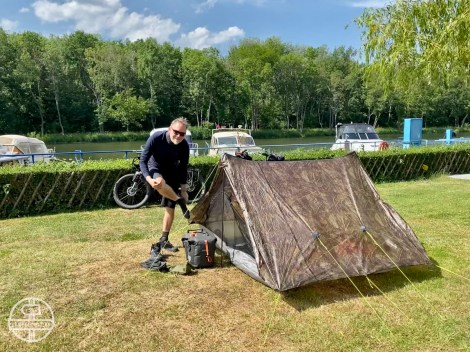 Bij het wakker worden was het wat meer bewolkt. Dat vinden we helemaal niet erg! David met zijn Marktplaats-tentje was al vertrokken. Hij moet kilometers maken.