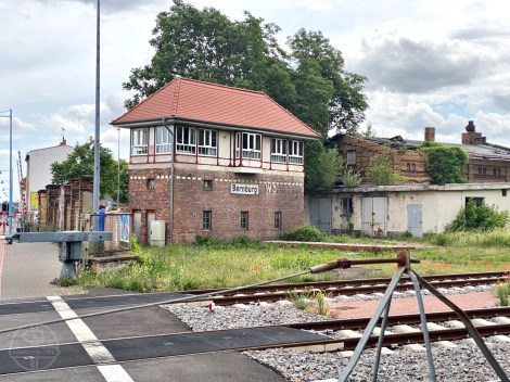 Onderweg komen we twee keer voor een gesloten spoorwegovergang te staan, eerste keer dat we dat meemaken op deze reis. De overgang in Bernburg werd nog vanuit een seinhuis bediend. Weliswaar elektrisch, maar toch.