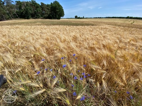 We zien onderweg veel korenvelden met blauwe korenbloemen in het gouden veld.